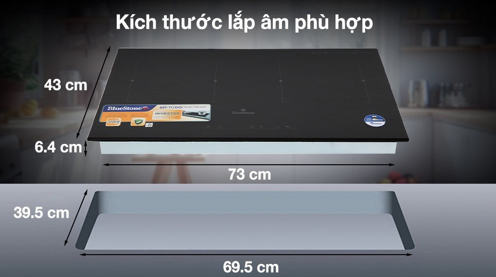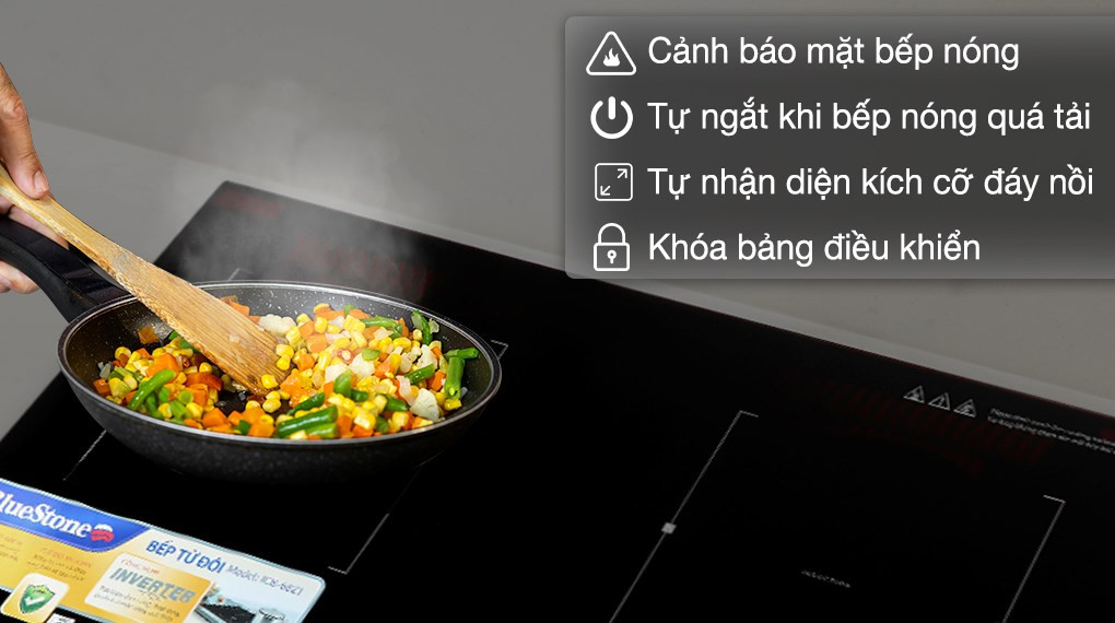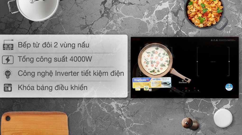 - Bếp từ Bluestone thiết kế sang trọng, 2 vùng nấu tiện dụng, có thể lắp âm tiết kiệm không gian, cần lắp CB để đảm bảo an toàn khi dùng.