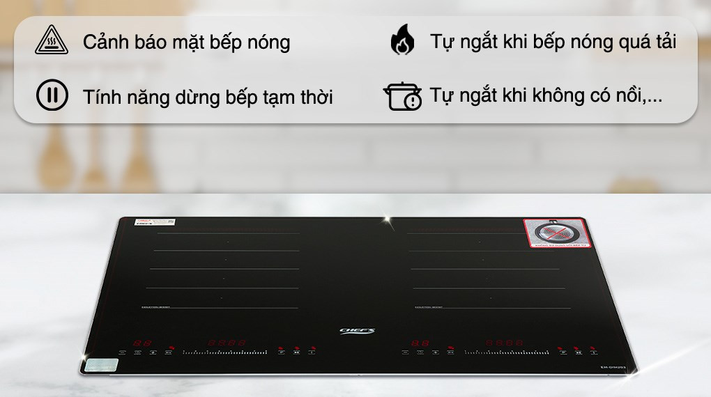- Cảnh báo mặt bếp nóng giúp người dùng nhận ra và tránh chạm vào mặt bếp gây bỏng.