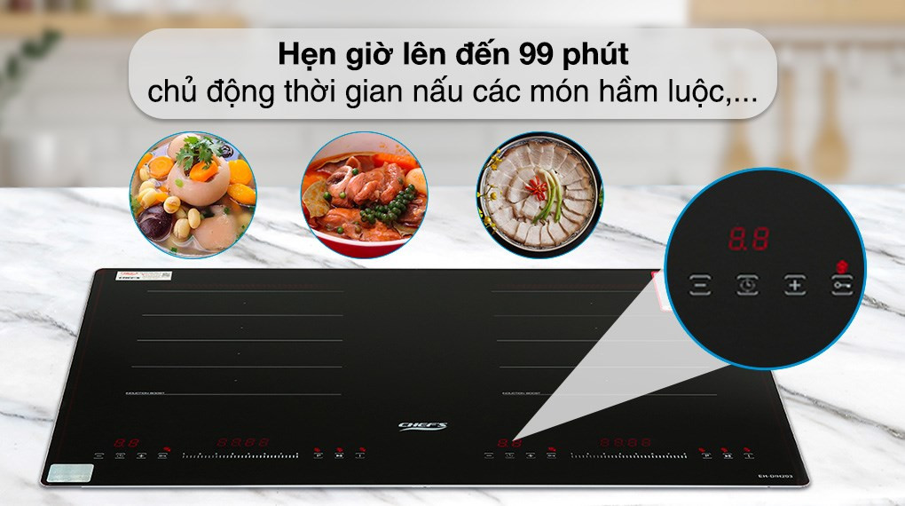 - Hẹn giờ độc lập cho từng vùng nấu lên đến 99 phút.