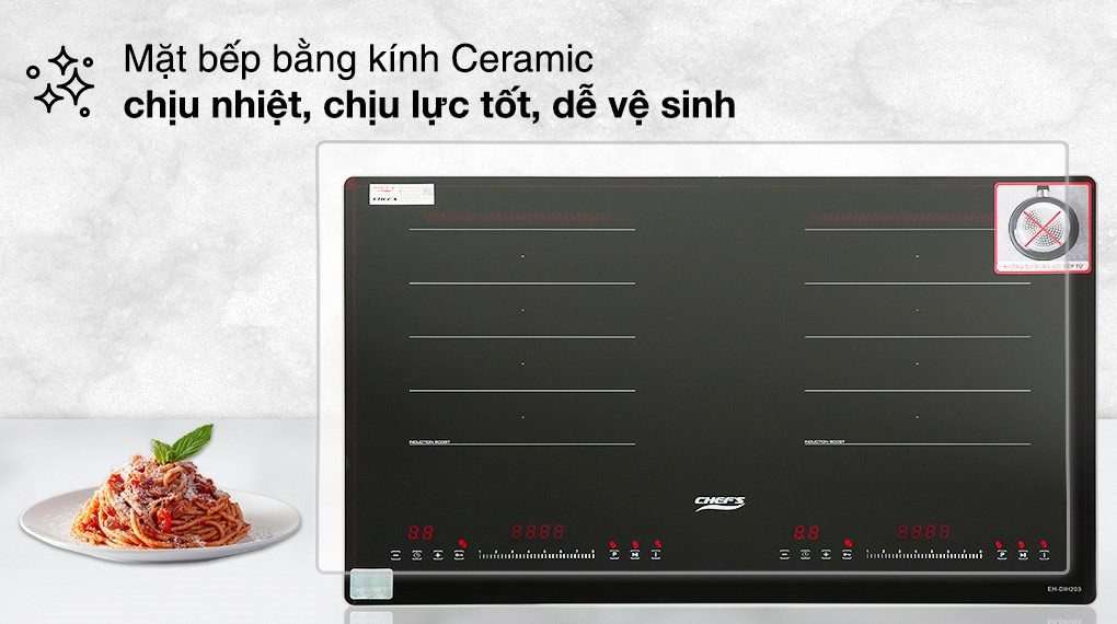 - Bếp từ Chef's EH - DIH203 là dòng bếp từ đôi lắp âm.