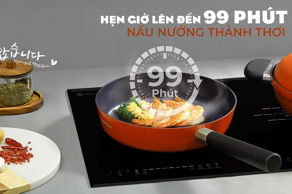 - Có hẹn giờ lên đến 99 phút hỗ trợ nấu các món ninh hầm mà không cần canh chừng thời gian tắt bếp.