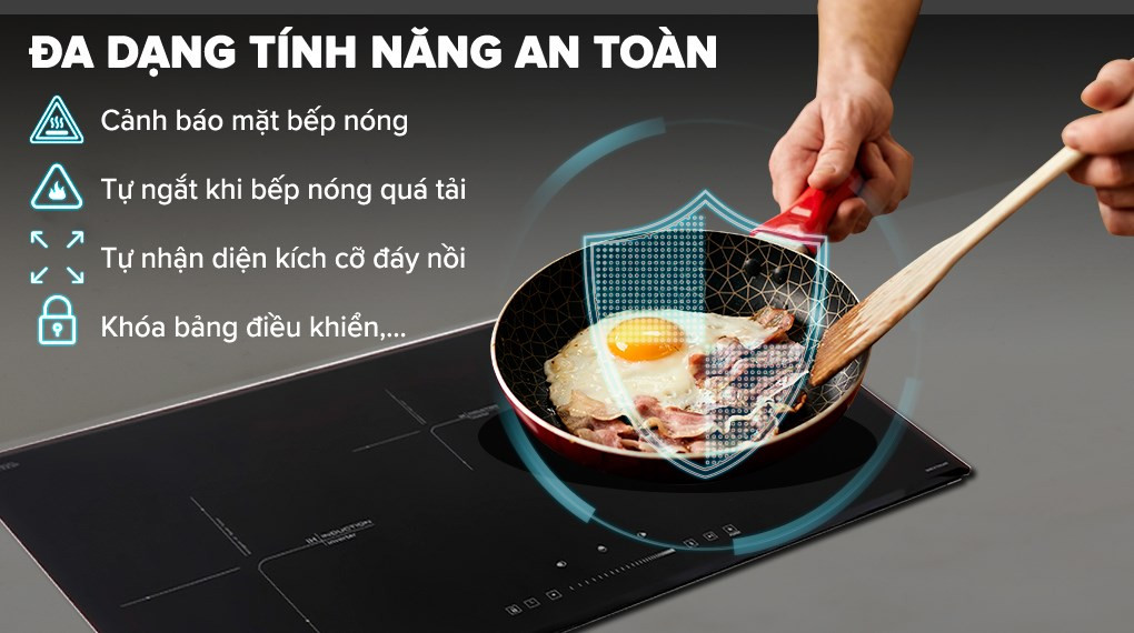 - Vùng bếp từ kén nồi, cần chọn nồi, chảo có đế nhiễm từ (gang, inox 430) để đảm bảo hiệu quả gia nhiệt, nấu ăn nhanh.