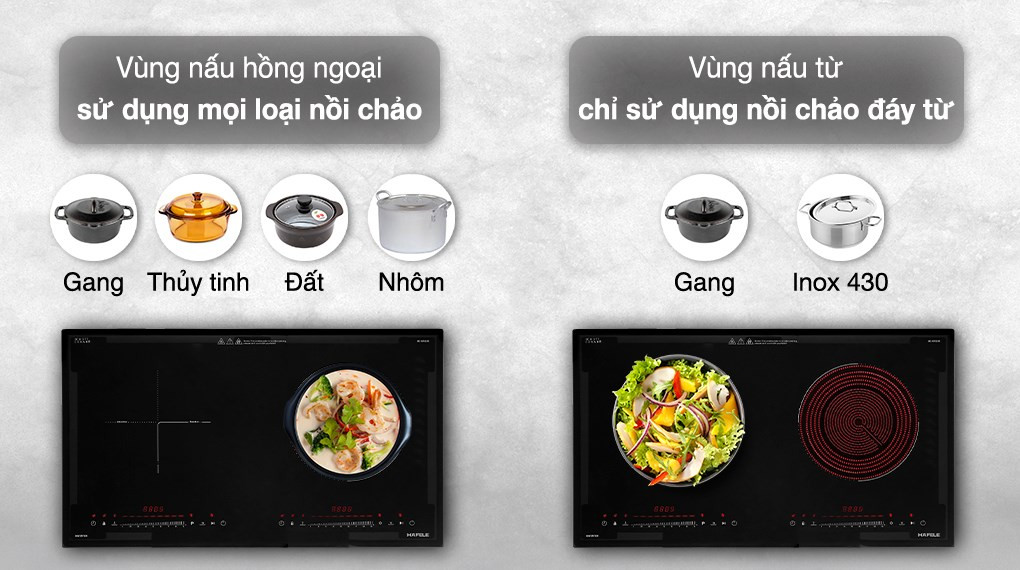 Vùng từ sử dụng nồi có đáy nhiễm từ, vùng hồng ngoại không kén nồi