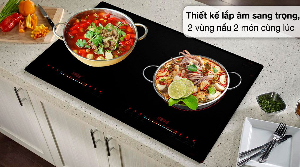 - Vùng bếp từ kén nồi, cần chọn nồi, chảo có đế nhiễm từ (gang, inox 430) để đảm bảo hiệu quả gia nhiệt, nấu ăn nhanh.
