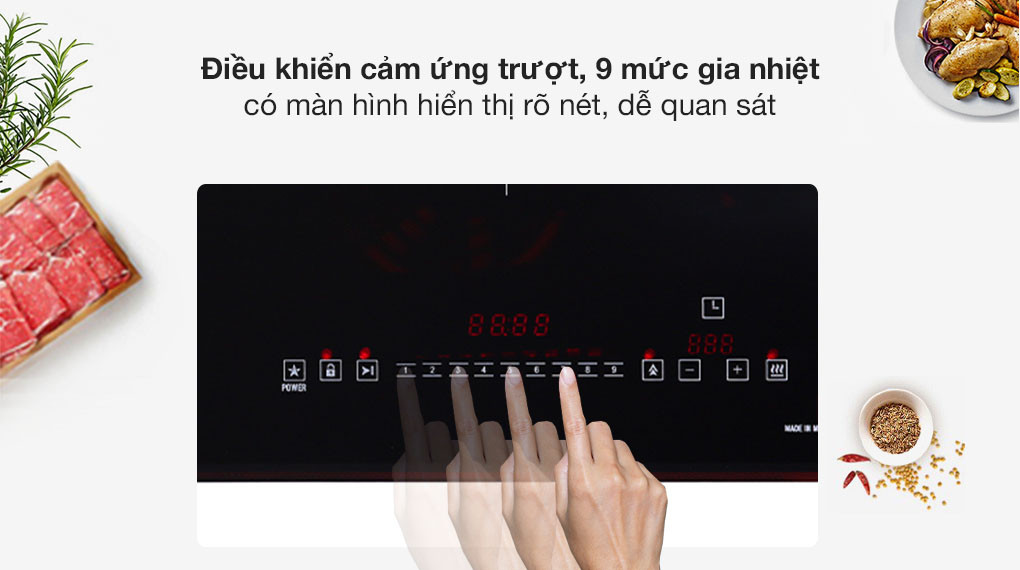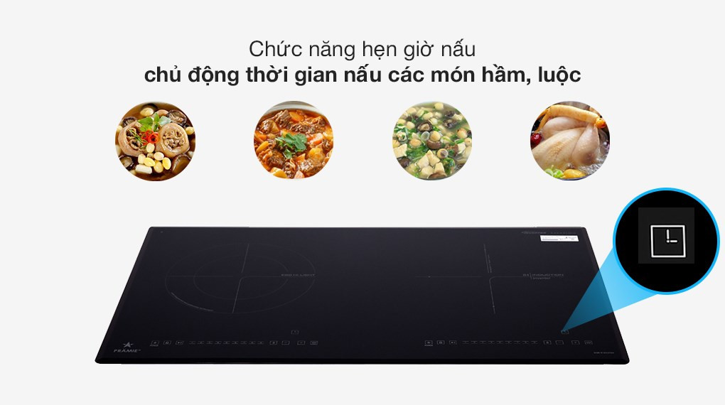 Chức năng hẹn giờ cho phép người dùng chủ động thời gian dùng bếp từ hồng ngoại, an tâm làm những công việc khác mà không lo món ăn quá nhiệt, cháy khét.