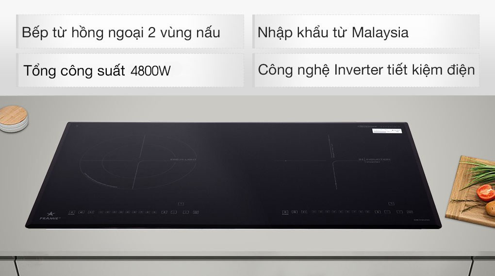 Bếp từ hồng ngoại Pramie 2108 phục vụ tốt cho các gia đình muốn tận dụng sự tiện nghi của cả 2 loại bếp điện, dùng an toàn, bền tốt, nấu ăn nhanh tiết kiệm thời gian.