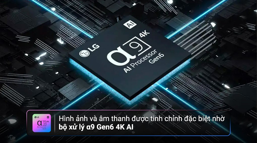 - Bộ xử lý α9 Gen6 4K AI tinh chỉnh hình ảnh, âm thanh với trí tuệ nhân tạo AI mang đến cho bạn trải nghiệm nghe nhìn vượt trội, tận hưởng trực quan thế giới sinh động qua màn hình tivi.