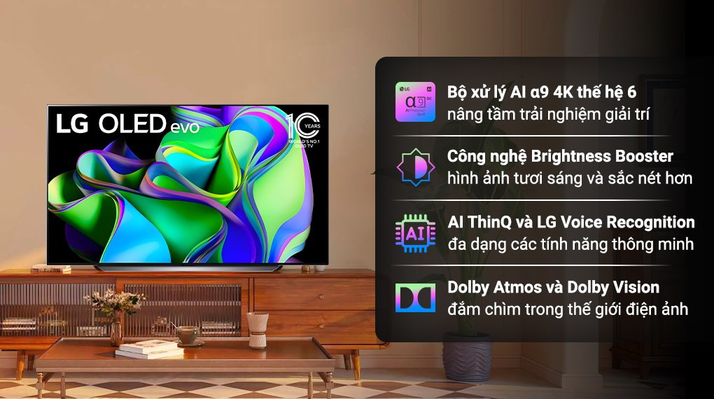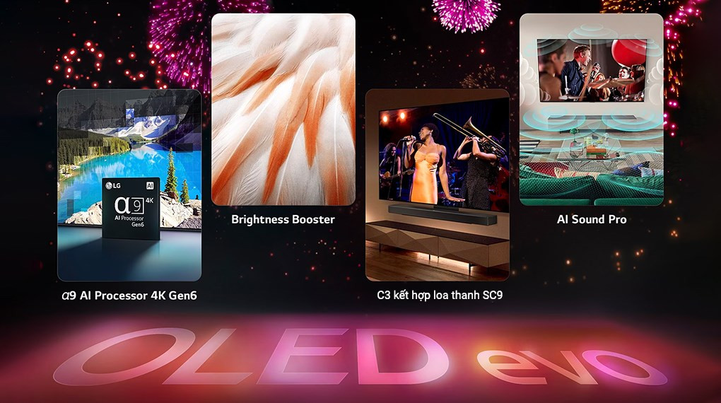 - Màn hình OLED Evo hiển thị các mảng màu chuẩn chỉnh, màu đen chân thực, hình ảnh sắc nét cùng độ phân giải 4K.